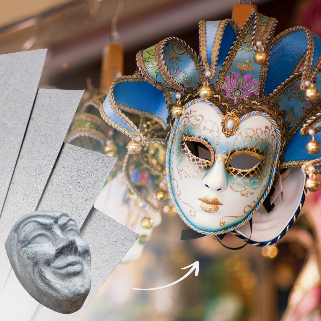 Fibro Mask ist ein außergewöhnliches Maskenpapier aus sorgfältig ausgewählten Spezial- und Recyclingfasern, das speziell für die Herstellung von Masken entwickelt wurde. Seit vielen Jahren findet es vor allem in Venedig Anwendung, dort, wo die Kunst der venezianischen Masken eine jahrhundertealte Tradition hat.